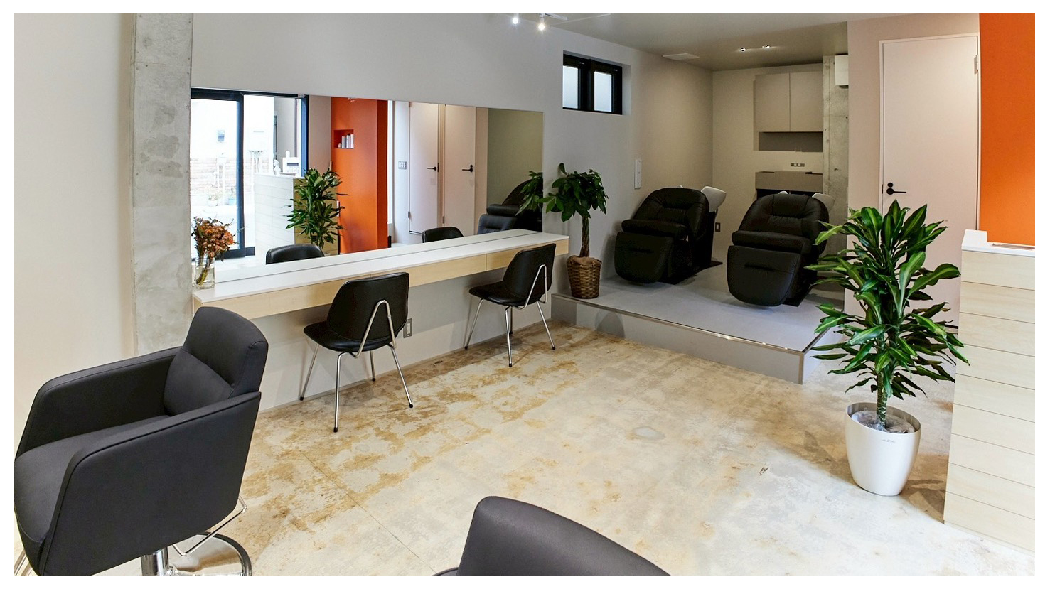 4席のみのゆったり空間シャンプー台2台
